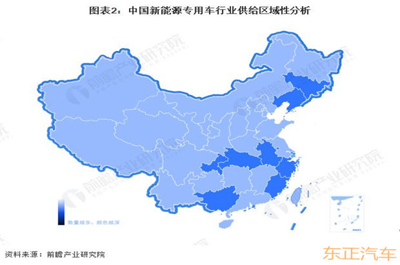 中國(guó)新能源專用車(chē)行業(yè)具有明顯的區(qū)域性。在供給方面,新能源專用車(chē)制造企業(yè)主要集中在廣西、福建等沿海地區(qū),供給區(qū)域性明顯;在需求方面,新能源專用車(chē)制造企業(yè)需求主要集中在東部地區(qū)與中部地區(qū)并逐漸向全國(guó)分散。