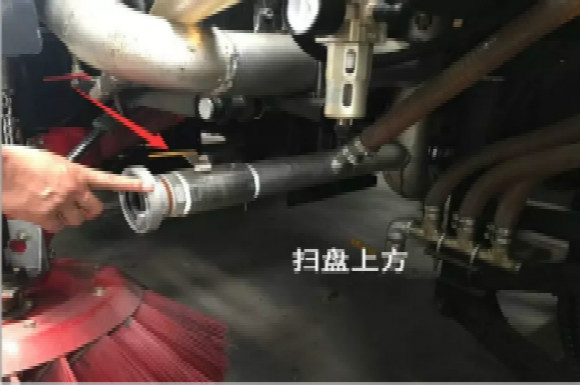 4.啟動底盤發(fā)動機,采用氣吹水,吹干滯留在左右噴桿、吸盤噴水桿、后噴霧桿里的水分