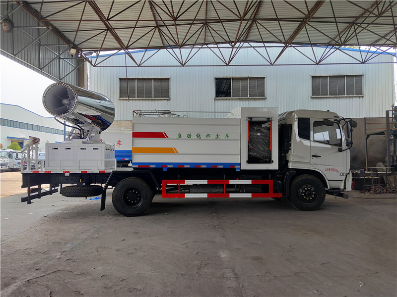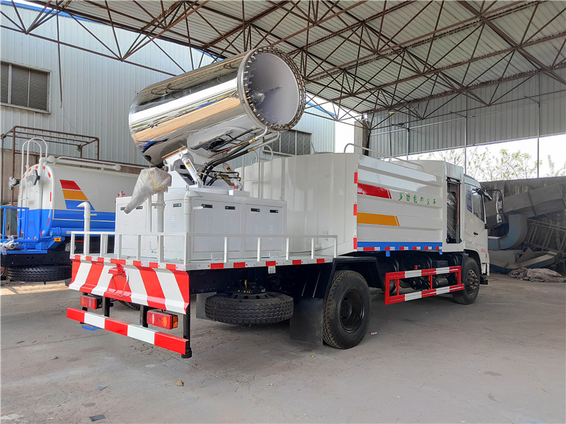 灑水車工作主要由發(fā)動(dòng)機(jī)帶動(dòng)變速箱,變速箱上安裝的取力器帶動(dòng)灑水車水泵產(chǎn)生動(dòng)力,將罐體內(nèi)部的水通過(guò)管路噴灑出去,水泵可自吸自排。可根據(jù)用戶需求選配抑塵霧炮。